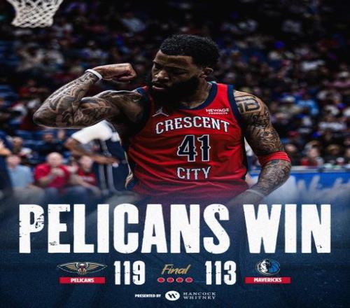 北京时间今日,在NBA常规赛中,新奥尔良鹈鹕队在主场以119-113击败了达拉斯独行侠队,豪取5连胜。