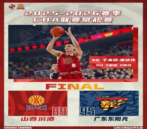 北京时间2025年12月28日19:35,2025-2026赛季CBA联赛第七轮继续进行,山西汾酒主场迎战广东东阳光。两队历史上共交手48次,山西汾酒10胜38负,上赛季常规赛两队交手7次,山西汾酒6胜1负。本场比赛,山西队整体发挥欠佳,全队未能保持良好的心态,进攻端处理球过于急躁,命中率偏低,出现较多失误,末节全队奋力拼搏一度将比分迫近,但最终未能把握住机会,遗憾落败,最终全场比赛结束,山西汾酒89:95不敌广东东阳光。