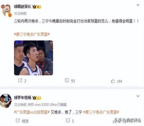 广东遭绝杀引热议!廖三宁3战2绝杀引媒体人狂刷屏“值得全明星”